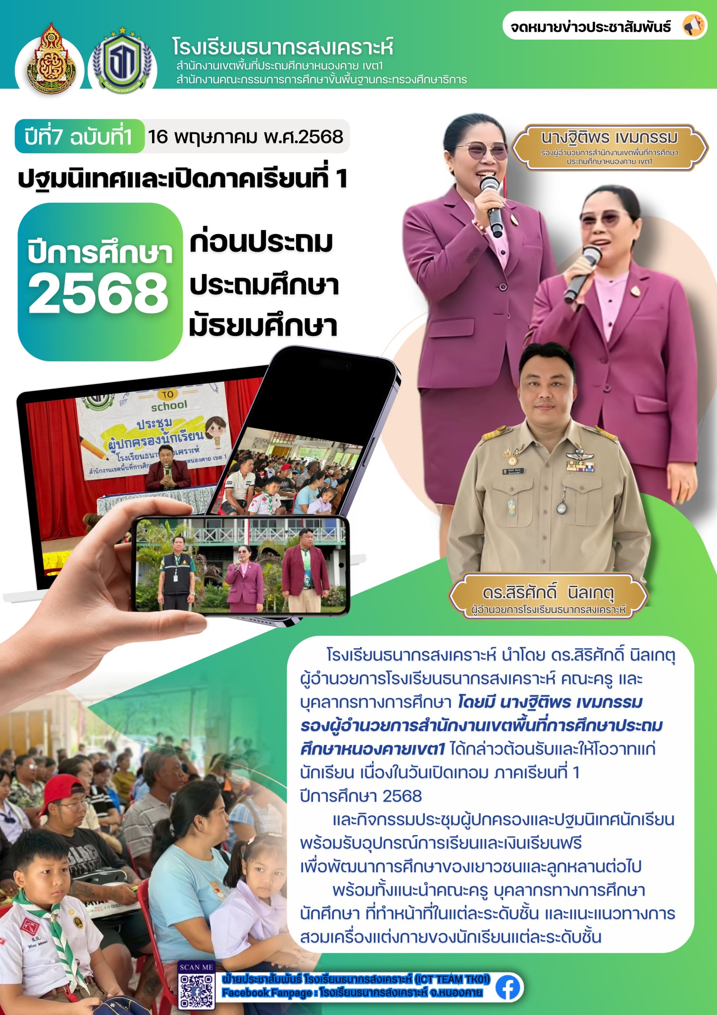 ปฐมนิเทศ และประชุมผู้ปกครอง ภาคเรียนที่ 1 ปีการศึกษา 2568